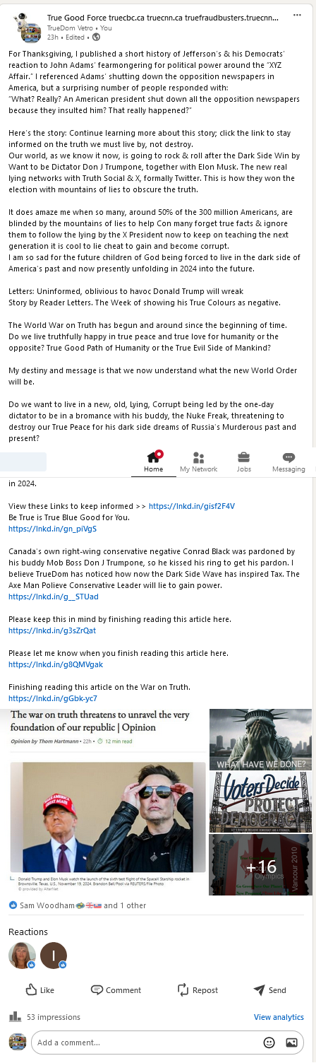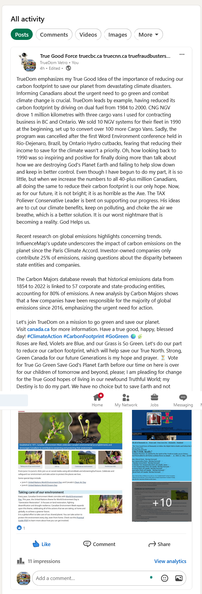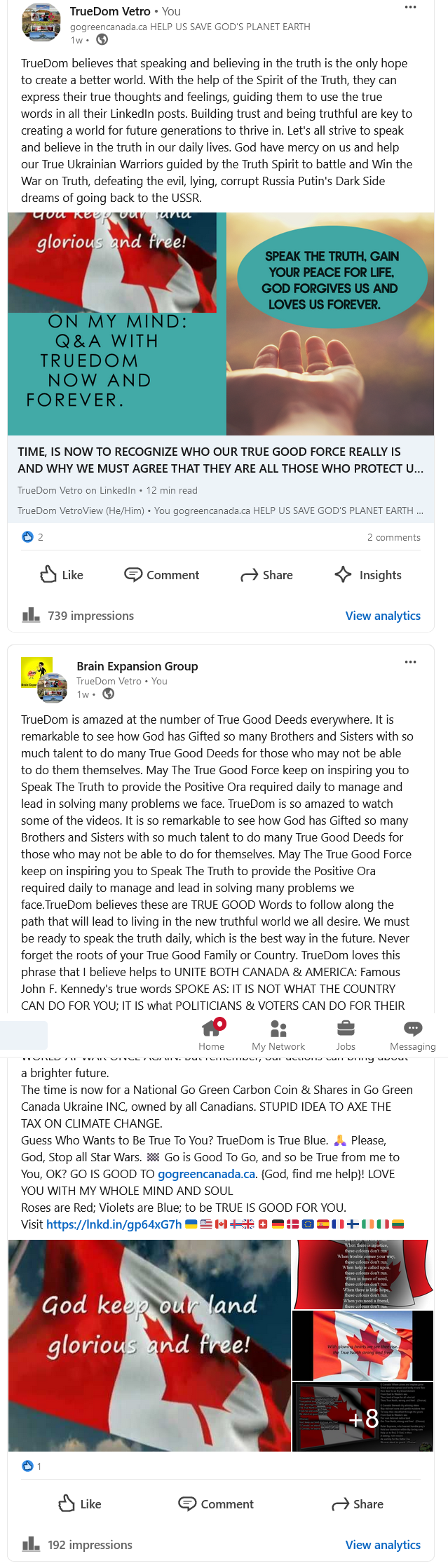 TRUEDom  Linked Post on March 7/24 gogreencanada.ca HELP US