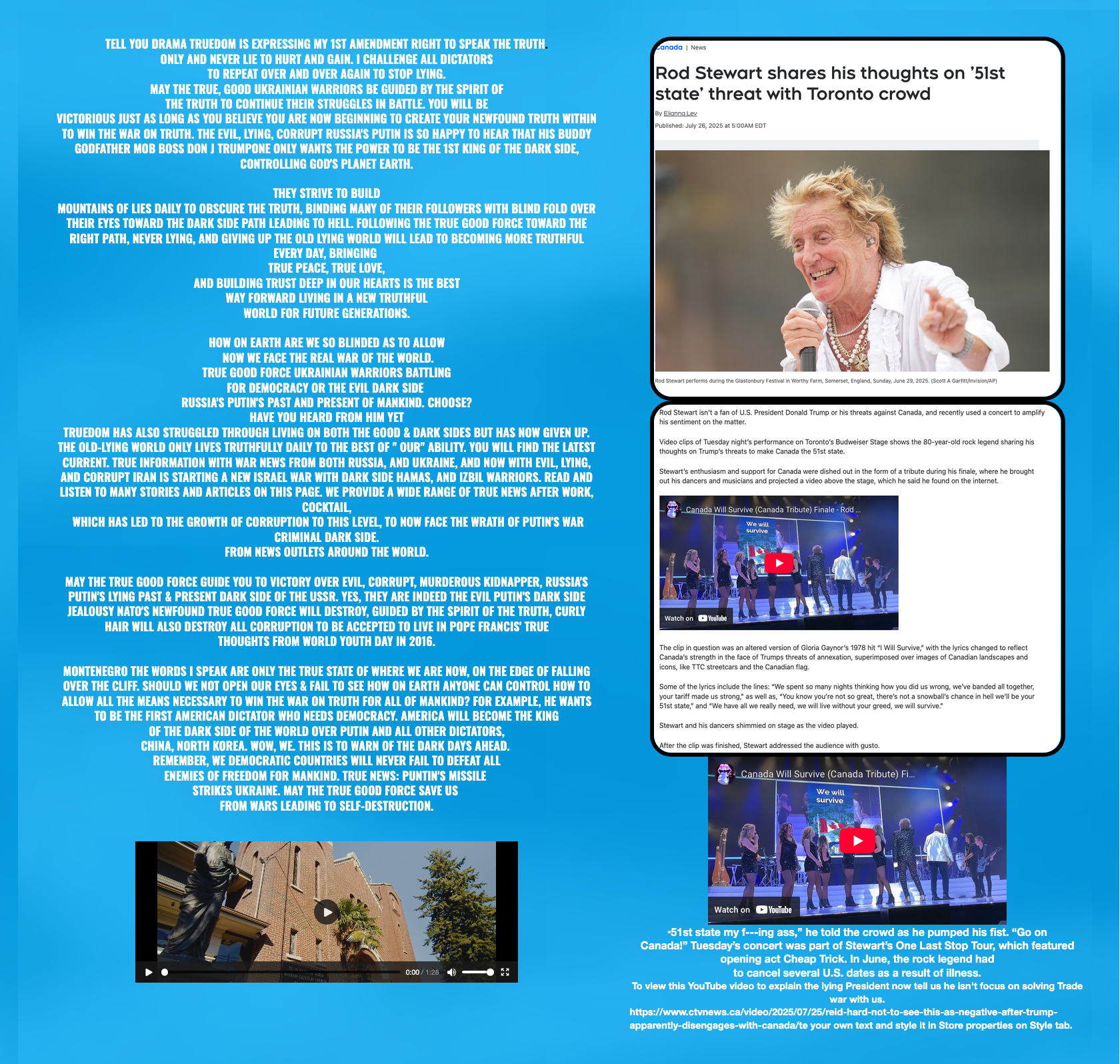 Every day, we face numerous challenges. Now, with the election over, we find ourselves dealing with a 'Mini-Trump' figure who seems to be following in the footsteps of his American counterpart. His divisive tactics threaten to tear apart Our True Canada, North Strong and Free. The consequences of inaction could be dire, and it's up to us to prevent them. Yes, it is Best to stop all buying American, and Visiting may lead to jail, as new corrupt law changes our border.