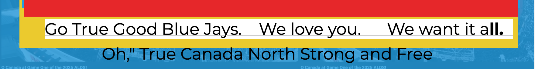 Let's strive to make this a reality in our beloved TRUE CANADA NORTH STRONG AND FREE. ON THIS 30th DAY OCTOBER 2025,