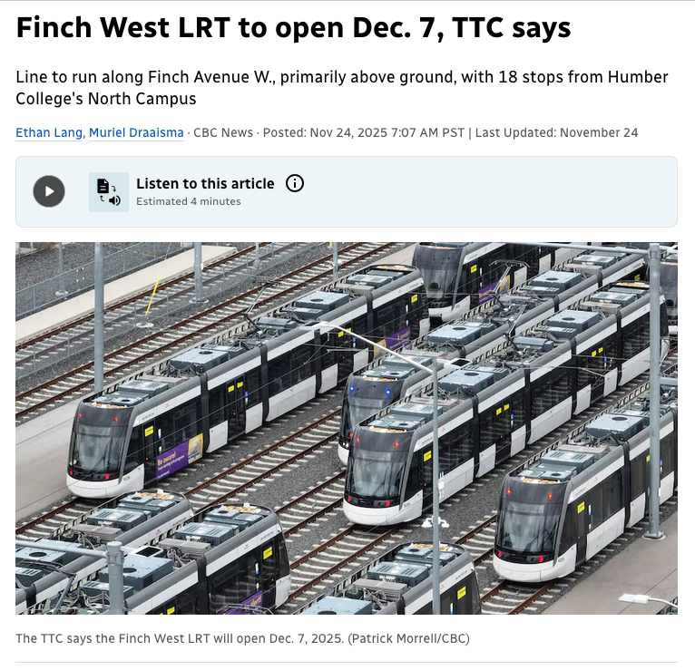 "But let's be honest, this should not have taken this long. While not as delayed as the Eglinton Crosstown, residents along Finch have been waiting for years for this project to open."