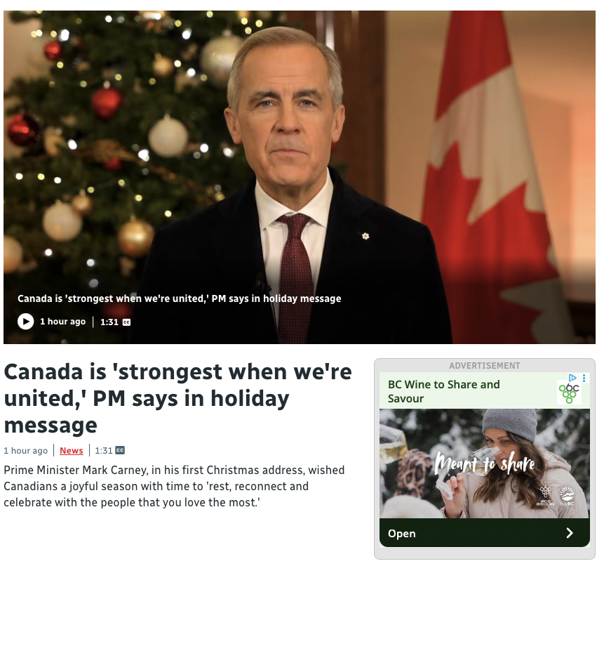 View this True Good Happy Christmas and True Good New Year in True Peace and True love for Humanity from our True Prime Minister Mark Carney, Same to you from TrueDom https://www.cbc.ca/player/play/video/9.7024744