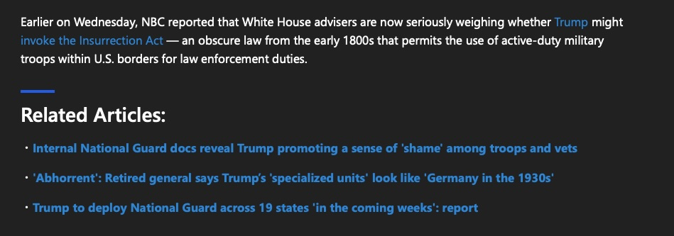 • Trump has signalled an eagerness to send the military to several U.S. cities, mostly led by elected officials from the Democratic Party, to quell what he and others in his administration have characterized as out-of-control crime.