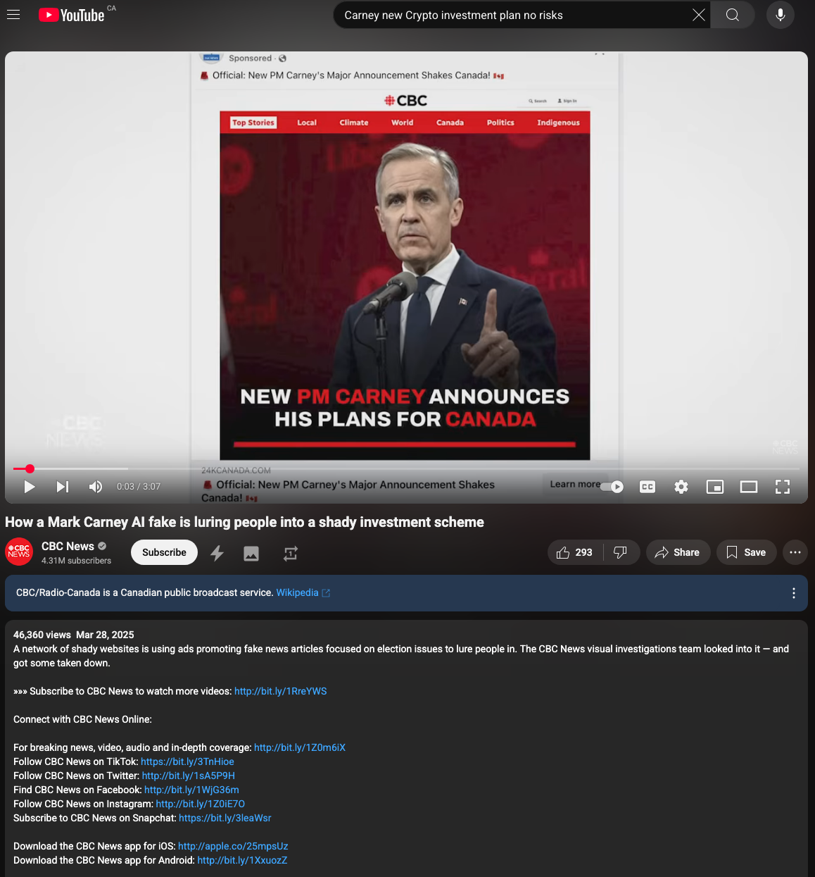 WE ARE NOW BEING EXPOSED BY ALL NEW AI DEEPFAKE WEBSITES WITH NEW CRYPTO FRAUDSTERS SCAMMING AWAY NOW USING BREAKING NEWS ON CBC WEBSITES USING OUR PRIME MINISTER MARK CARNEY INTRODUCING