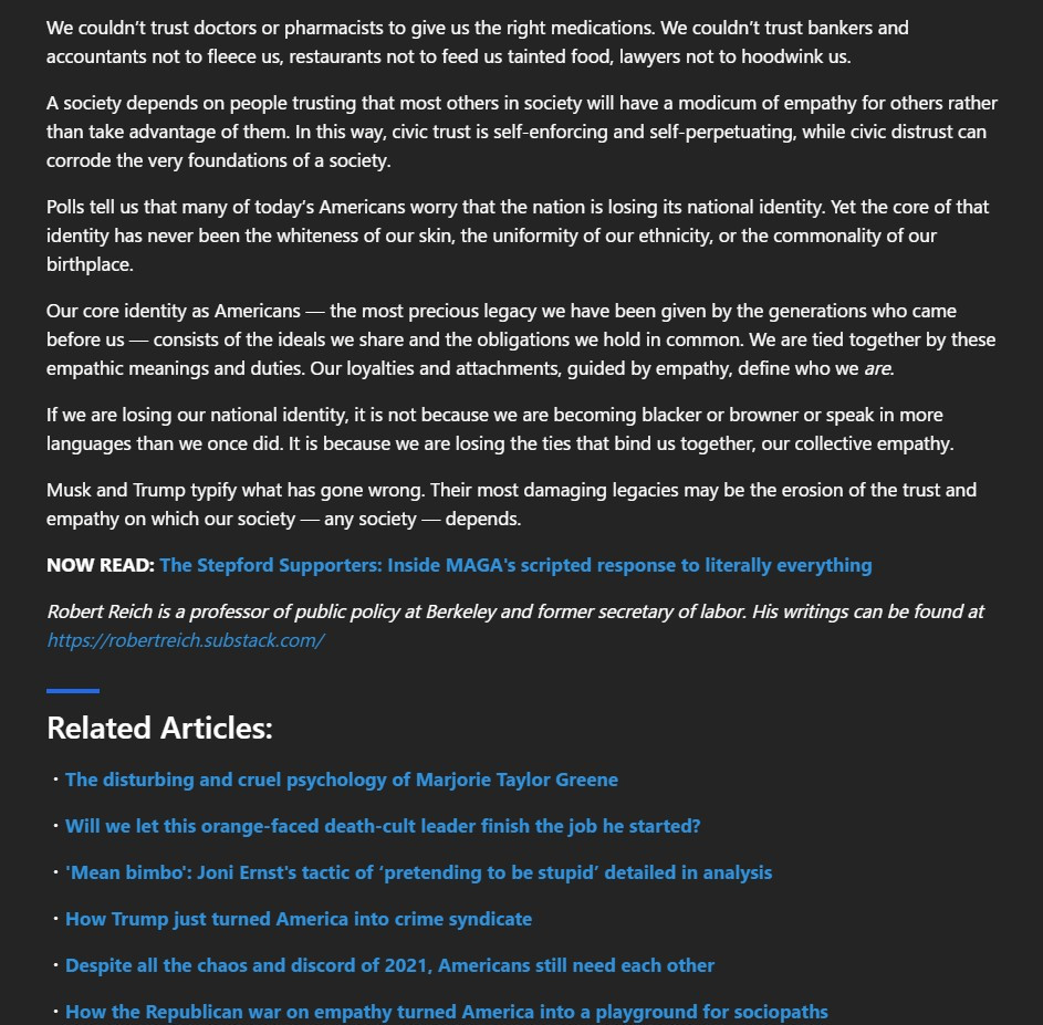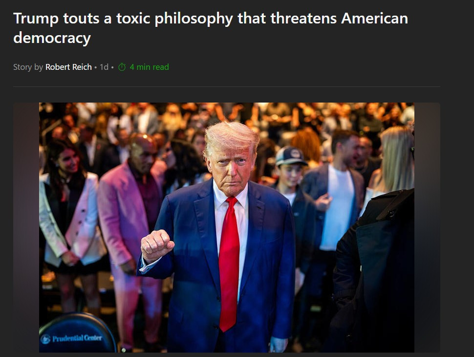 It has now been normalized and followed by so many blind Americans on the Dark Side of the Cult he has conned for many years to build now and get elected by the Oligarchs like Elon Muskolini, his top Lieutenant. now becoming world dictator build the dark side to control humanity.